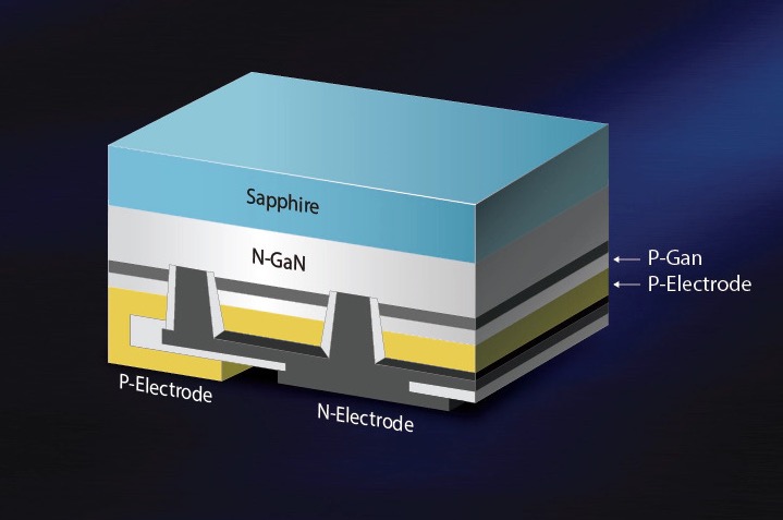 Kedua, dalam hal kinerja pendaran, penggerak arus tinggi membuat efisiensi cahaya lebih tinggi.Flip-chip memiliki skalabilitas arus dan kinerja kontak ohmik yang unggul.Penurunan tegangan pada chip flip umumnya lebih rendah daripada chip struktur tradisional dan vertikal, yang membuat chip flip sangat menguntungkan pada penggerak arus tinggi, menunjukkan efisiensi cahaya yang lebih tinggi.