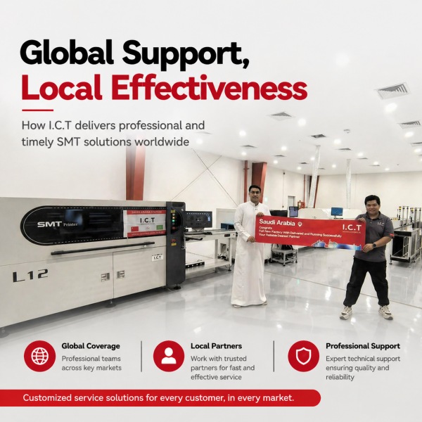 Ketika Anda memilih ICT, Anda tidak hanya mendapatkan peralatan SMT yang canggih — Anda juga mendapatkan sistem dukungan khusus yang menjamin efisiensi, profesionalisme, dan layanan tepat waktu, di mana pun Anda berada.